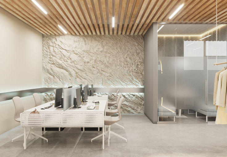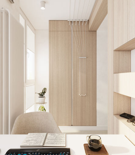 Одним з завдань було мінімізувати візуальне навантаження щоб простіше було сконцентруватись на роботі... ніяких відкритих стелажів з безліччю полиць де все припадає пилом та займає площу