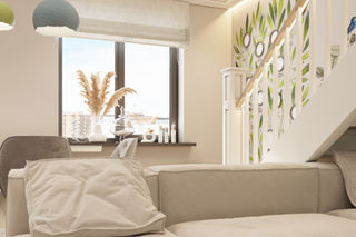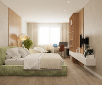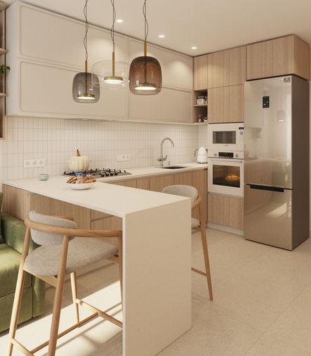 Цей інтер'єр — втілення спокою та затишку🌿. Натуральні в ідтінки, м'які фактури, золоті елементи, багато природного освітлення створюють ідеальну атмосферу для відпочинку.